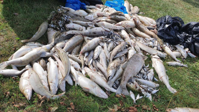 setki kilogramów padłych ryb wyłowiono z siedleckiego zalewu