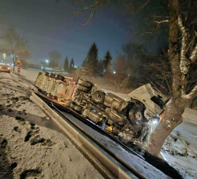 Przewrócona cysterna z gazem na DK-19 w Sarnakach