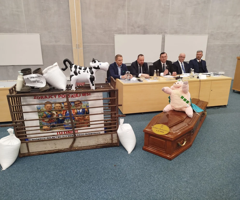 – Przyjechaliśmy na spotkanie z ministrem rolnictwa, tzw. likwidatorem polskiej wsi, ale nie zostaliśmy dopuszczeni tak naprawdę do głosu. Minister dostawał jakieś karteczki, ludzie byli ustawieni do zadawania pytań. My reagujemy na trudną sytuację w polskim rolnictwie. Rząd nas oszukuje i z umową z Mercosur, i z Ukrainą, napływ tych produktów destabilizuje cały sektor rolny, i my dzisiaj po prostu reagujemy. Stąd jest plakat dla elity polskiej wsi, jest trumna jako symbol tego rolnictwa, które tak naprawdę za chwilę może dojść do upadłości. – powiedział Esce Łukasz Komorowski, przewodniczący NSZZ Solidarność Rolników Indywidualnych w powiecie węgrowskim.