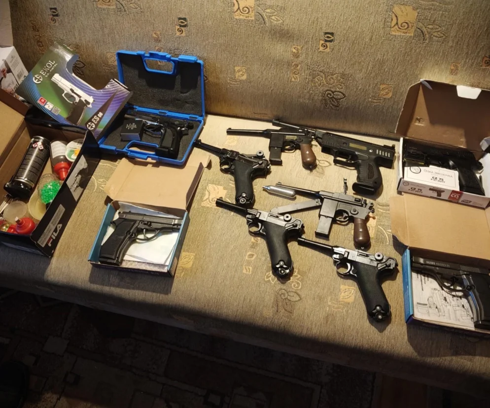 Policjanci niezwłocznie podjęli czynności. W mieszkaniu wskazanym przez zawiadamiającego zastali 81-letniego mężczyznę. W trakcie przeszukania funkcjonariusze ujawnili i zabezpieczyli łącznie 17 przedmiotów przypominających broń śrutową typu wiatrówka – w tym 2 jednostki długie oraz 15 krótkich.