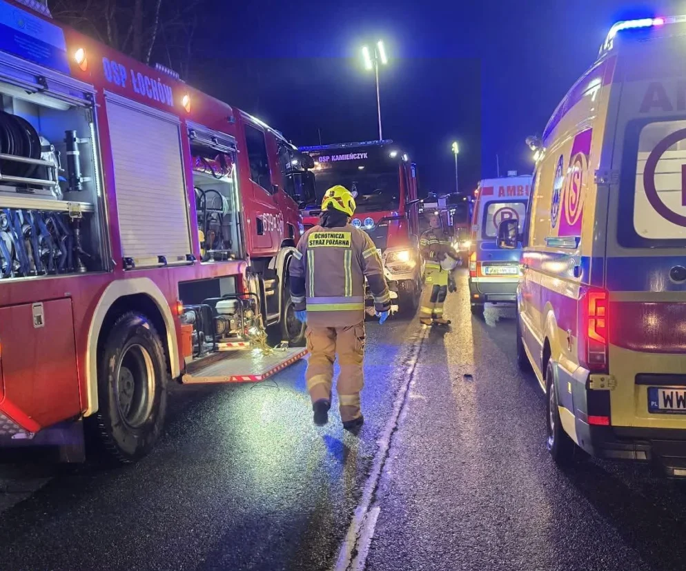 „Rankiem 12 lutego 2026 r. zastęp GBA Star z naszej jednostki oraz GCBA Scania z OSP Łochów Al. Węgrowska zostały zadysponowane poza teren powiatu węgrowskiego. Zdarzenie miało dotyczyć wypadku autobusu na drodze krajowej DK-62 na odcinku Łochów-Wyszków. Po dojechaniu na miejsce, na odcinku leśnym DK-62 w okolicach Kamieńczyka, zastano autobus leżący na boku poza jezdnią, pracujące zastępy JRG/OSP z terenu powiatu wyszkowskiego, liczne służby medyczne (7 naziemnych ZRM oraz 1x LPR "Ratownik-12") oraz Policję i służby pomocnicze. W wyniku wypadku poszkodowane zostało ponad 30 osób, zdarzenie miało charakter masowy, w wyniku przeprowadzonej selekcji medycznej (triage) zakwalifikowano poszkodowanych: 3 czerwone, 7 żółtych, pozostali zieloni. Nasze zastępy wspomagały na miejscu pracę służb z terenu powiatu wyszkowskiego, głównie pomoc medyczna, doświetlanie, itp. Na czas prowadzonych działań droga została całkowicie zablokowana” – informuje Piotr Gajewski, naczelnik OSP Budziska.